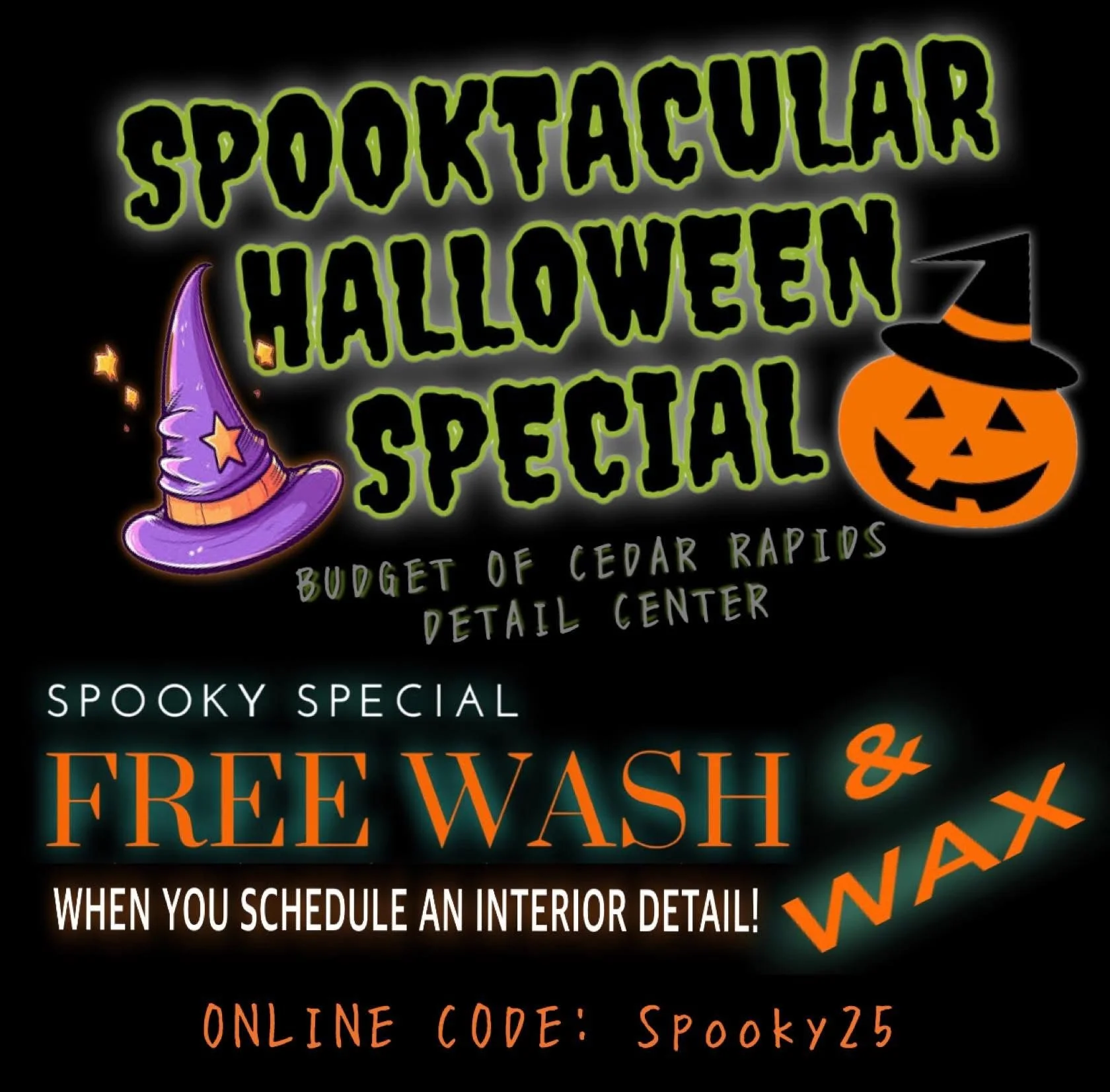LIMITED TIME- FREE WASH & WAX WITH AN INTERIOR DETAIL! SEE ONLINE CODE BELOW.